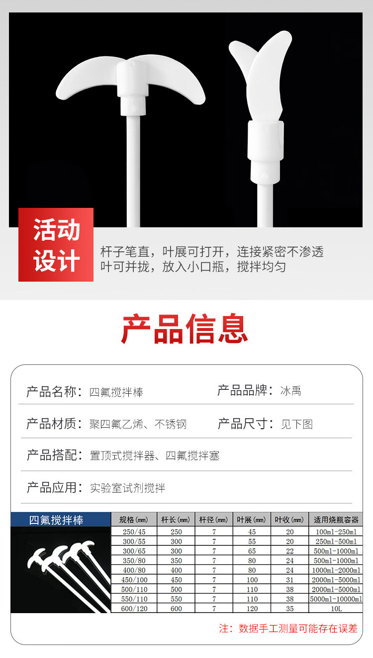 冰禹 四氟搅拌棒 BYA-291 聚四氟乙烯+不锈钢 300/50/7mm 1个