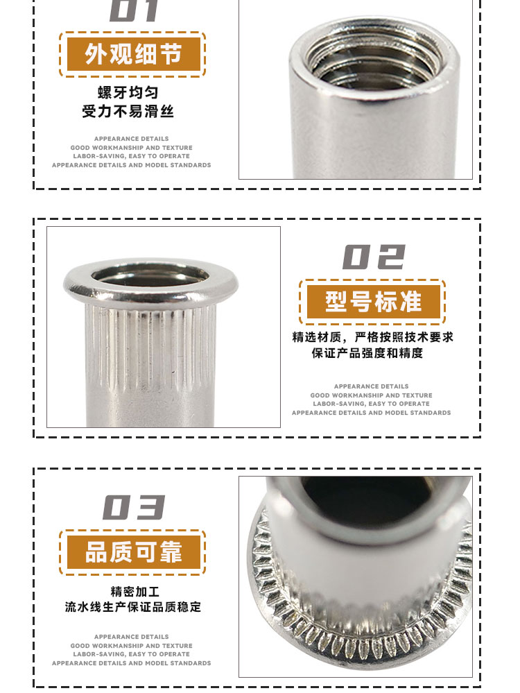 首页>紧固密封件>紧固件>螺母>其他螺母>冰禹 开口型竖纹平头铆螺母
