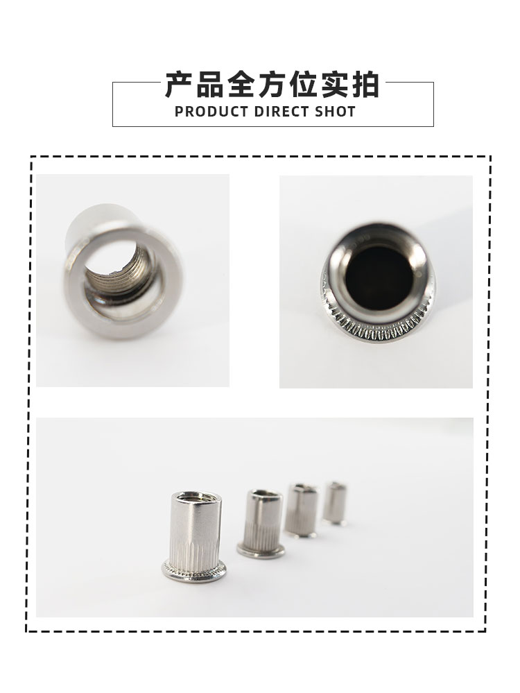 首页>紧固密封件>紧固件>螺母>其他螺母>冰禹 开口型竖纹平头铆螺母
