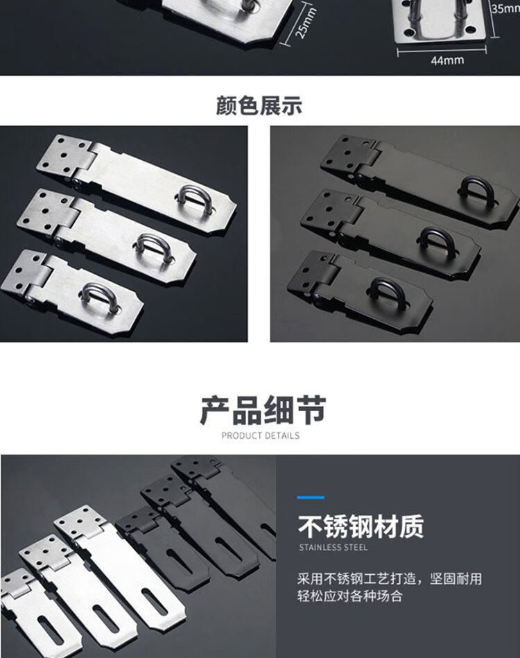 冰禹 门扣锁扣锁牌 BYaf-78 201不锈钢 银色3寸 1个