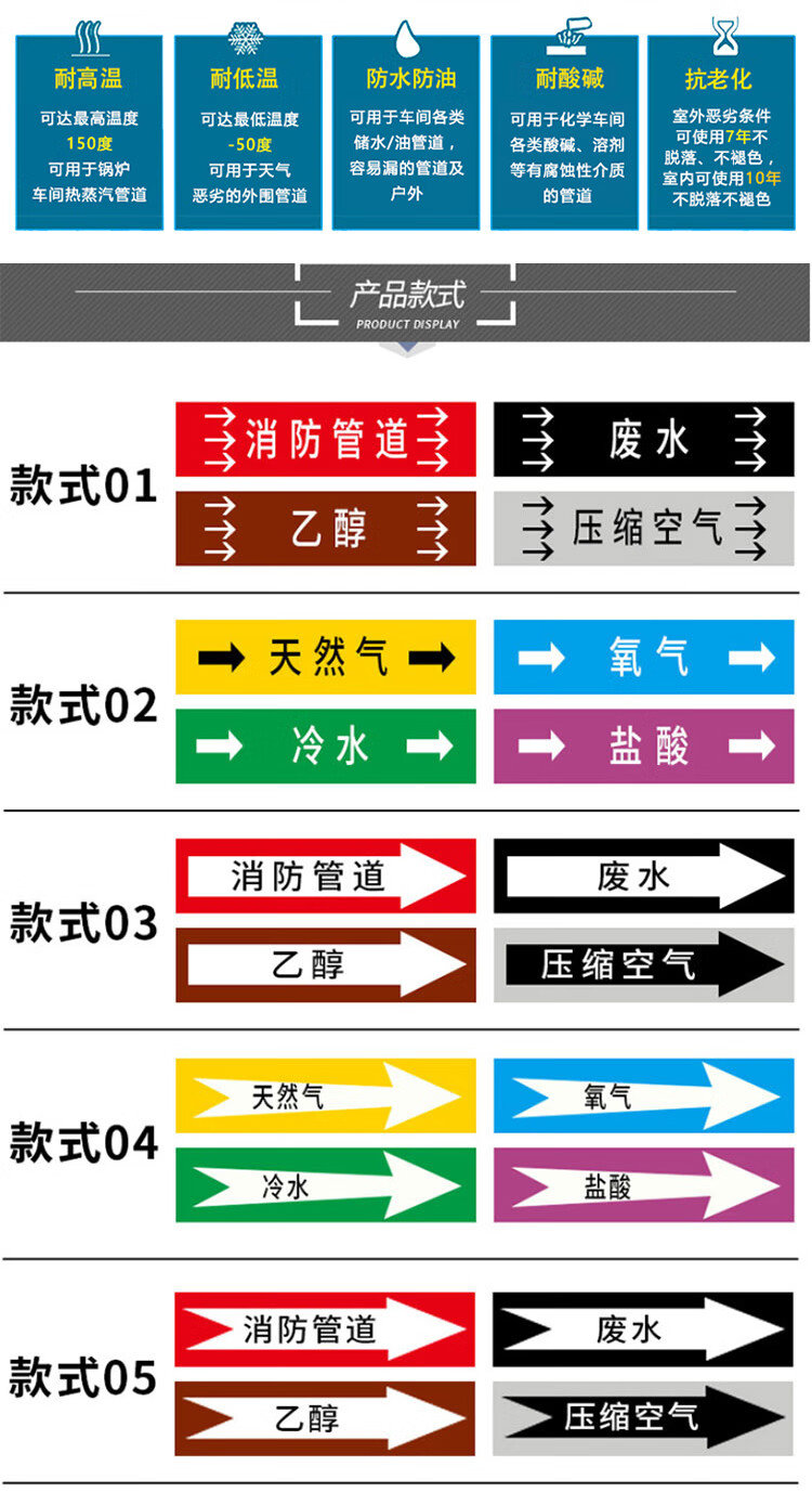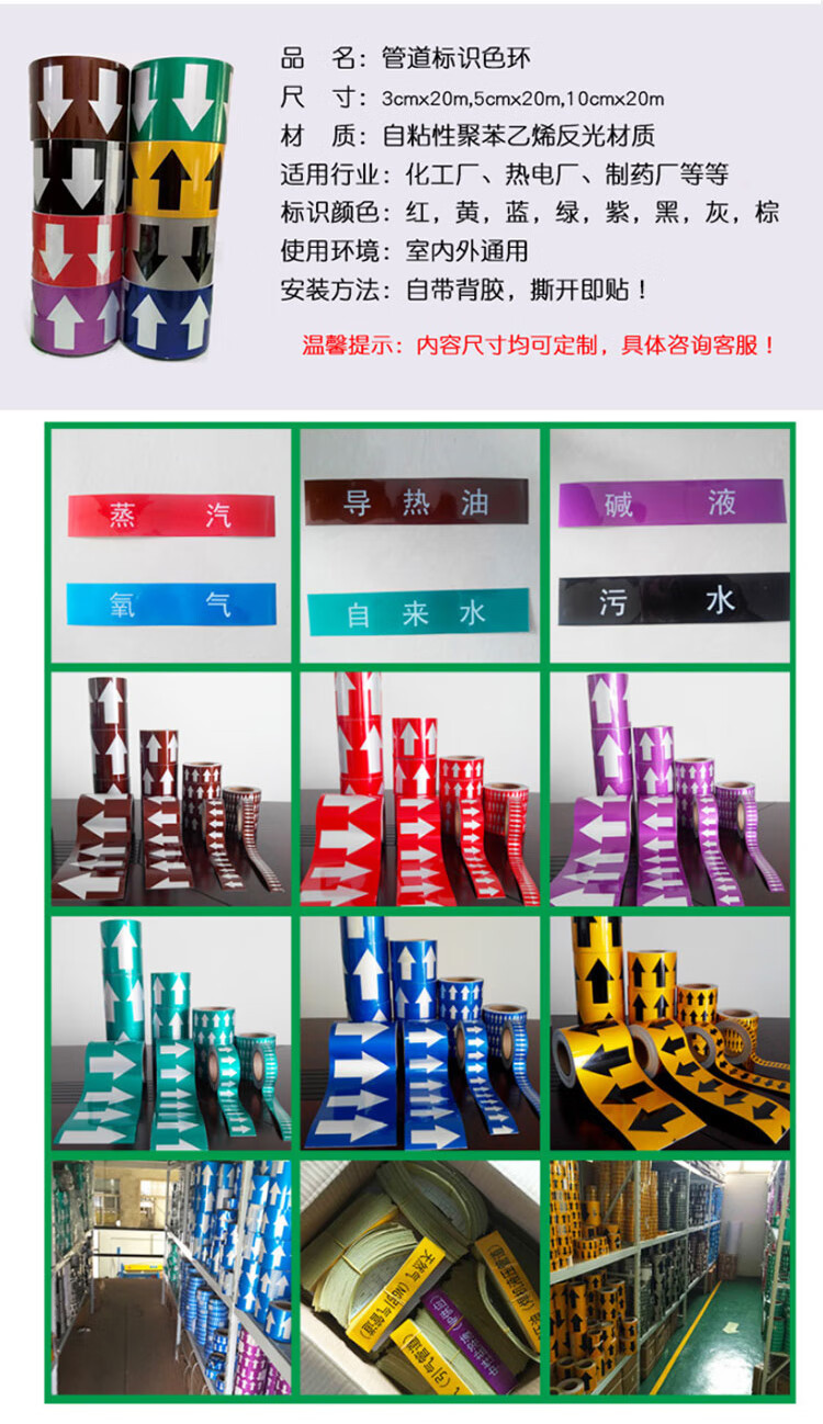 冰禹 国标反光膜管道标识贴 BYyn-621 4*20cm 空气 10张 1包