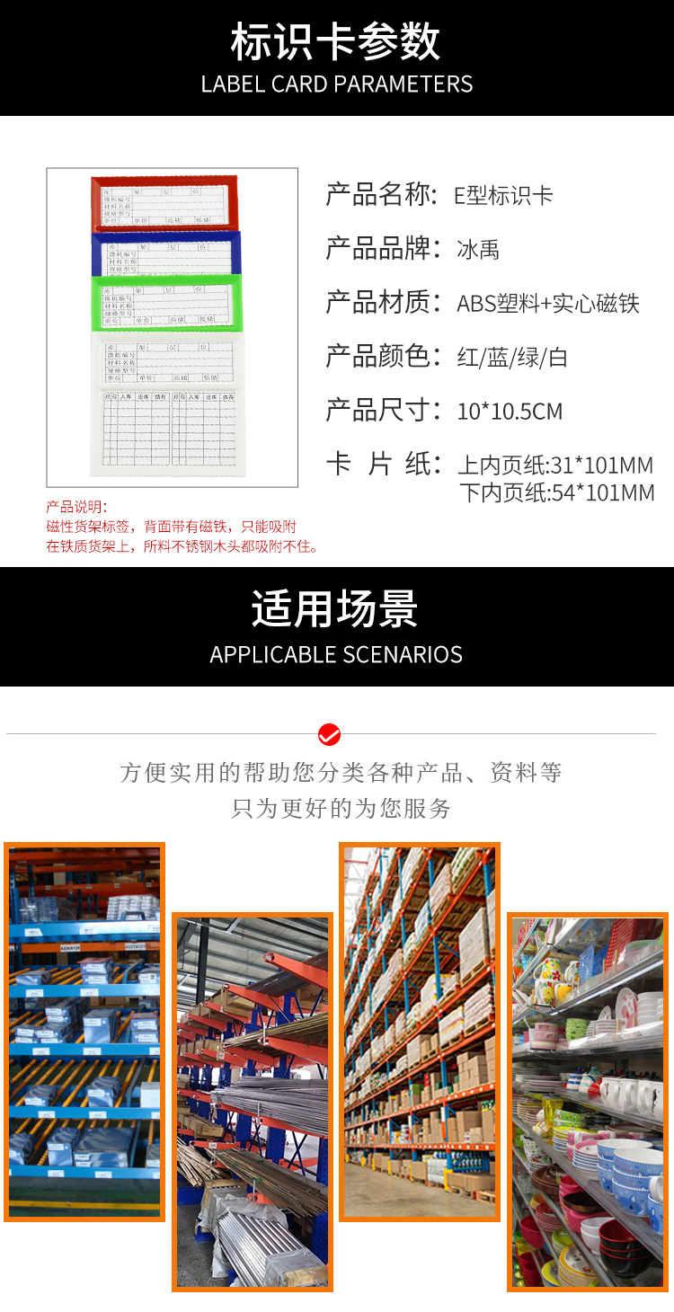 冰禹 仓库标示卡 BYyn-07 ABS+磁铁 10*10.5cm E型绿色(含标签纸) 15个 1包