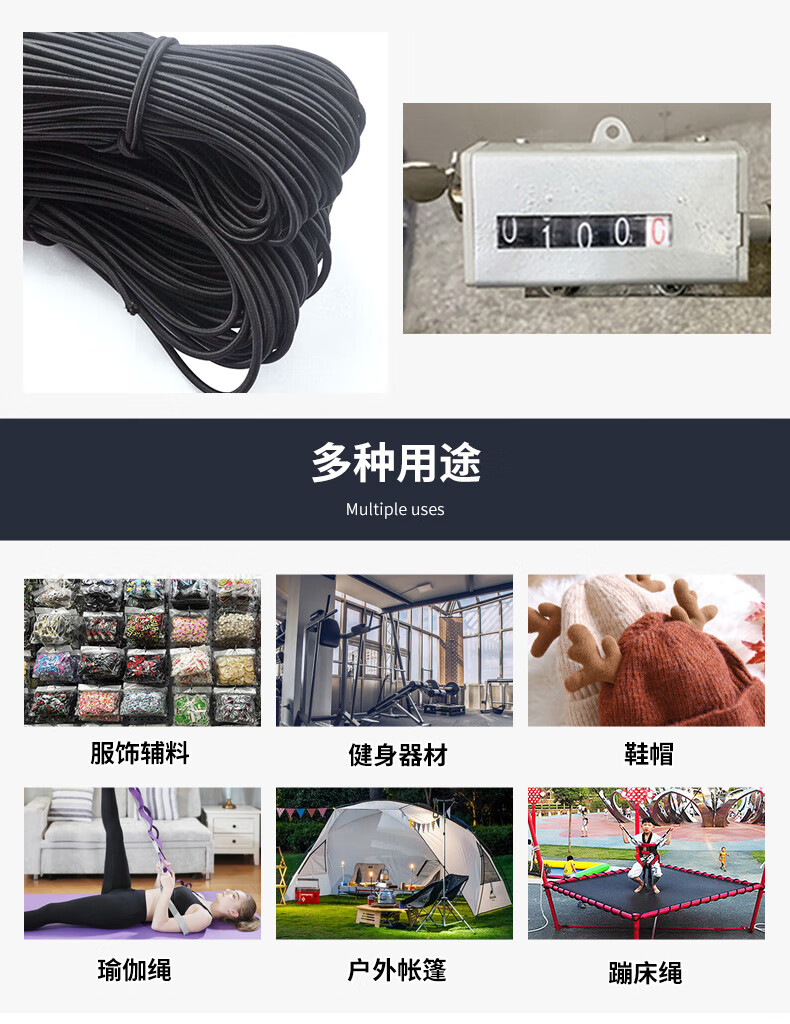 冰禹 松紧绳 BYcc-192 4mm 黑色 100米 1卷