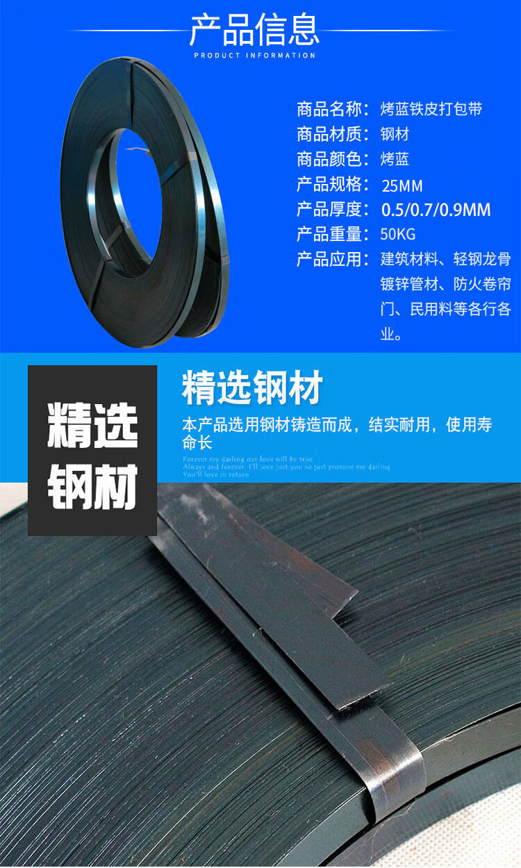 冰禹 铁皮打包带 BYK-58 钢材 烤蓝 16mm宽*0.5mm厚*40kg 1卷
