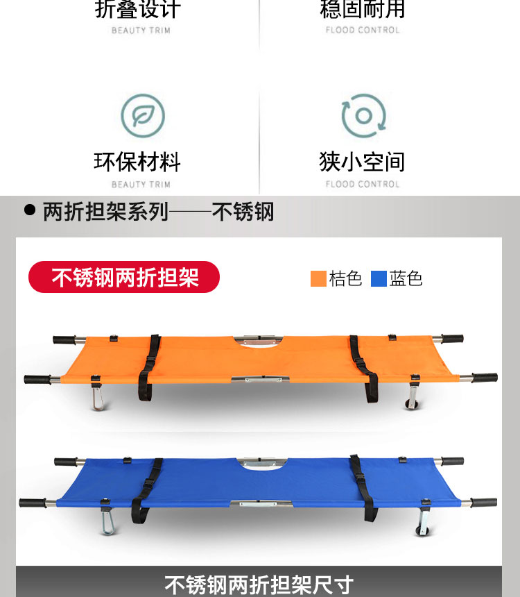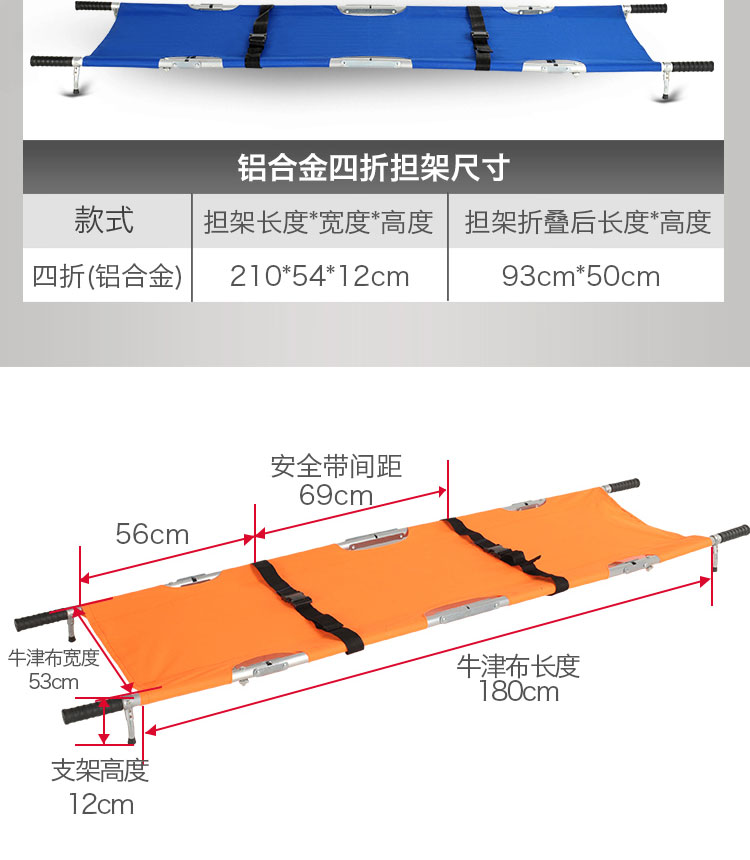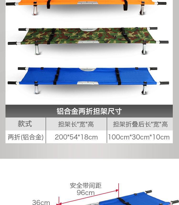 冰禹 多功能简易折叠担架 BYlj-138 蓝色镀锌铁加厚两折(150公斤) 1个
