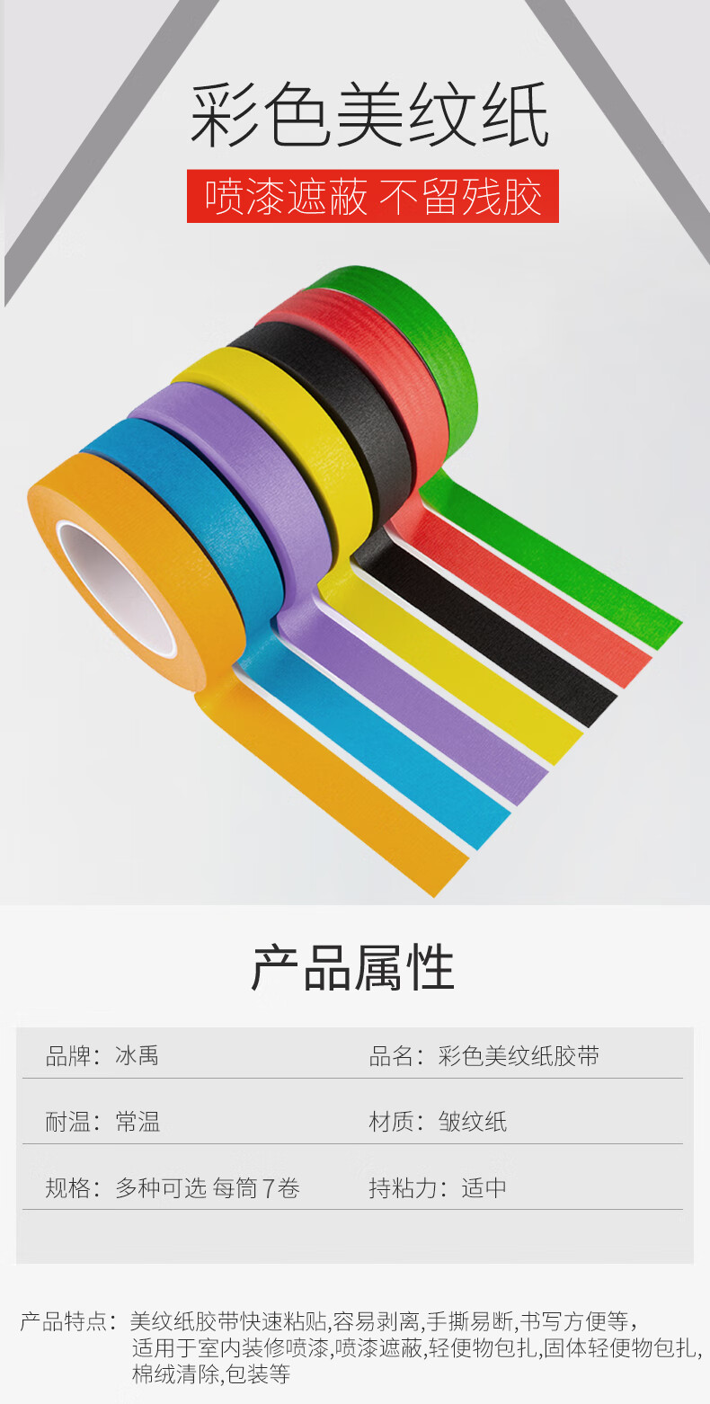 冰禹 彩色美纹纸胶带 BYK-106 皱纹纸 20mm*20m 7卷 1包