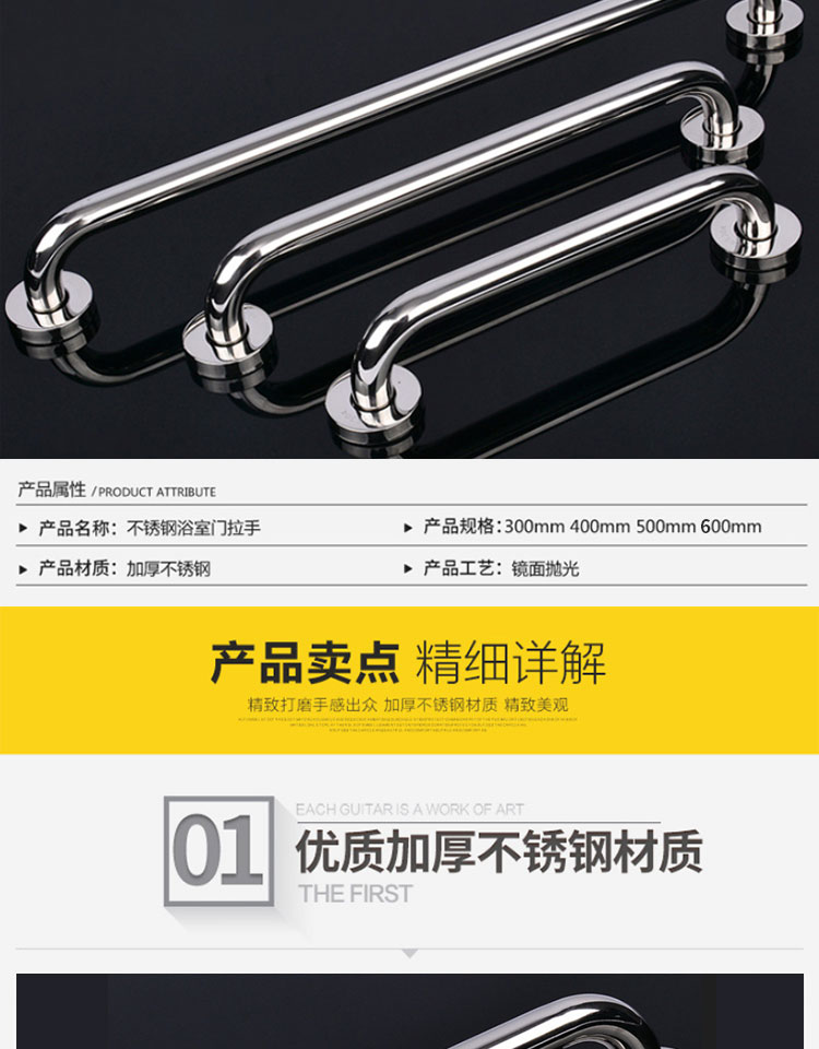 冰禹 安全扶手 BYly-106 不锈钢 总长50cm 32mm管径 1个