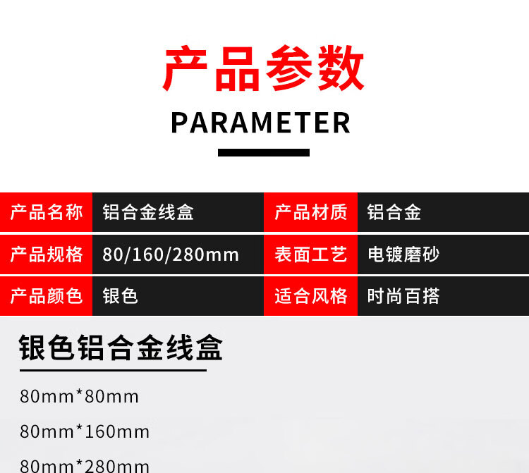 海斯迪克 穿线盒 gncl-22 铝合金 电镀磨砂 80mm*280mm 1个