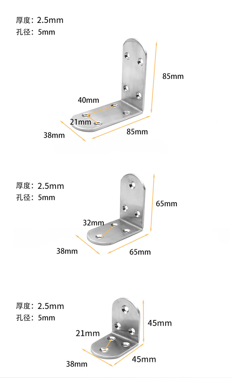 海斯迪克 直角角码 gnjz-7202 不锈钢 拉丝 圆边6孔65*65*38*2.5mm 1个