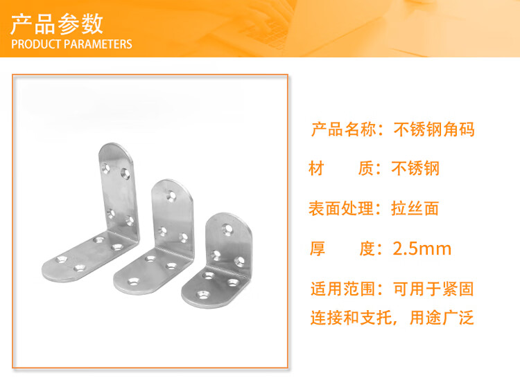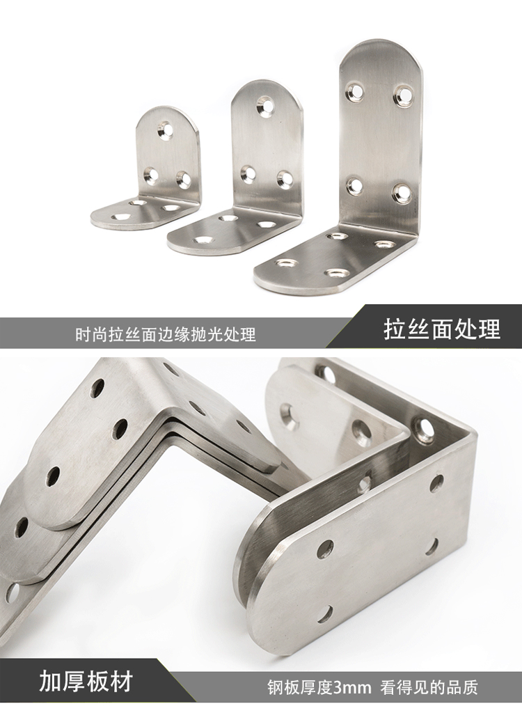 海斯迪克 直角角码 gnjz-7202 不锈钢 拉丝 圆边8孔85*85*38*2.5mm 1个