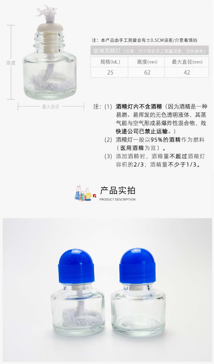冰禹 实验室小号酒精灯 BYA-586 玻璃 25ml 1个