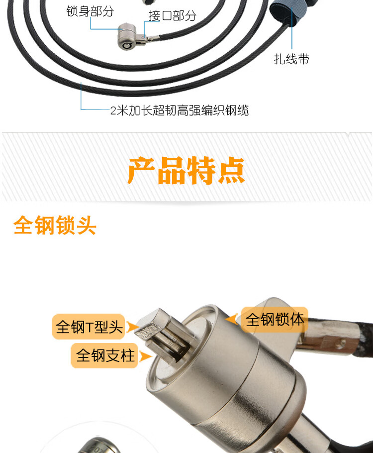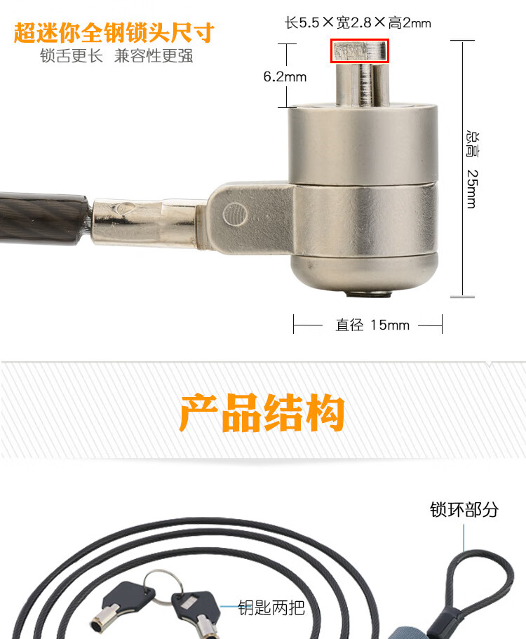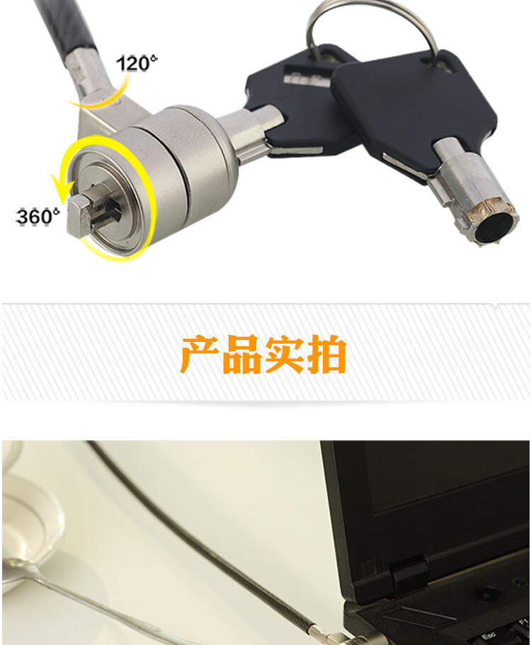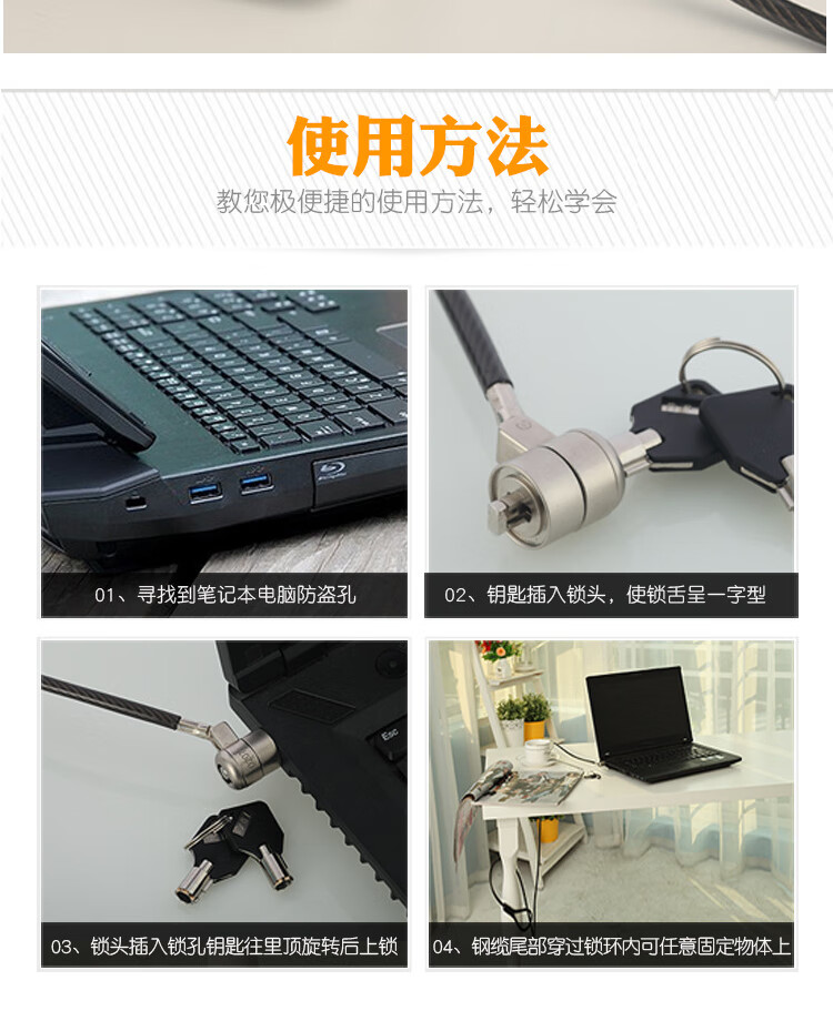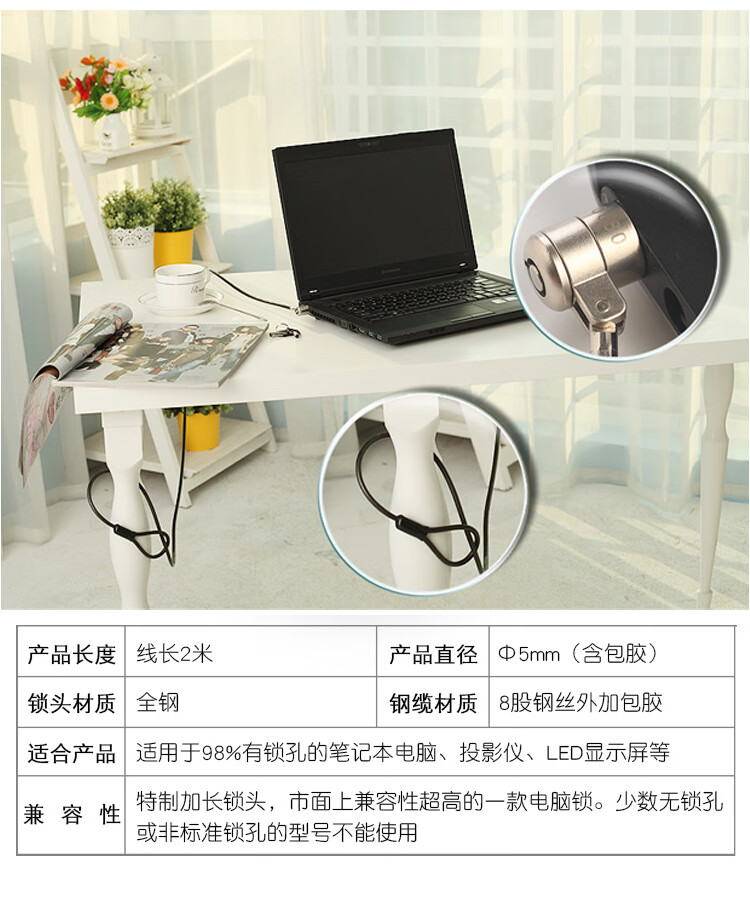 海斯迪克 笔记本电脑锁套装 gnjz-7512 通用型2米防盗锁+编号钥匙 1套