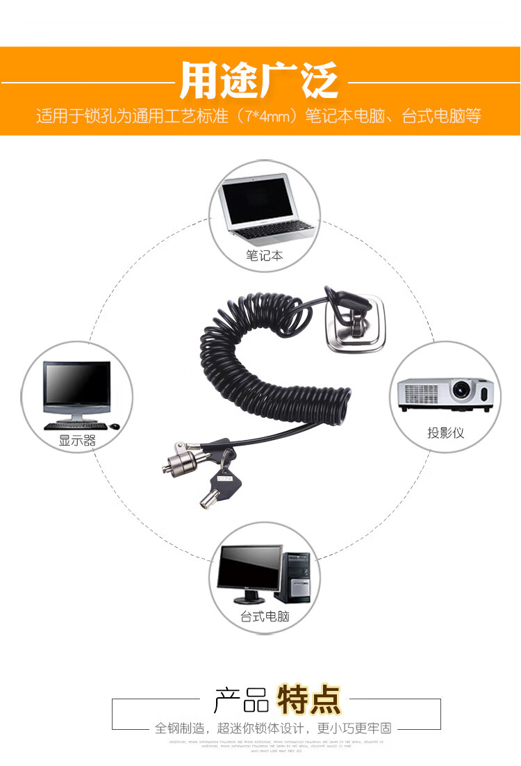 海斯迪克 笔记本电脑锁 gnjz-7512 可伸缩弹簧绳锁 1个