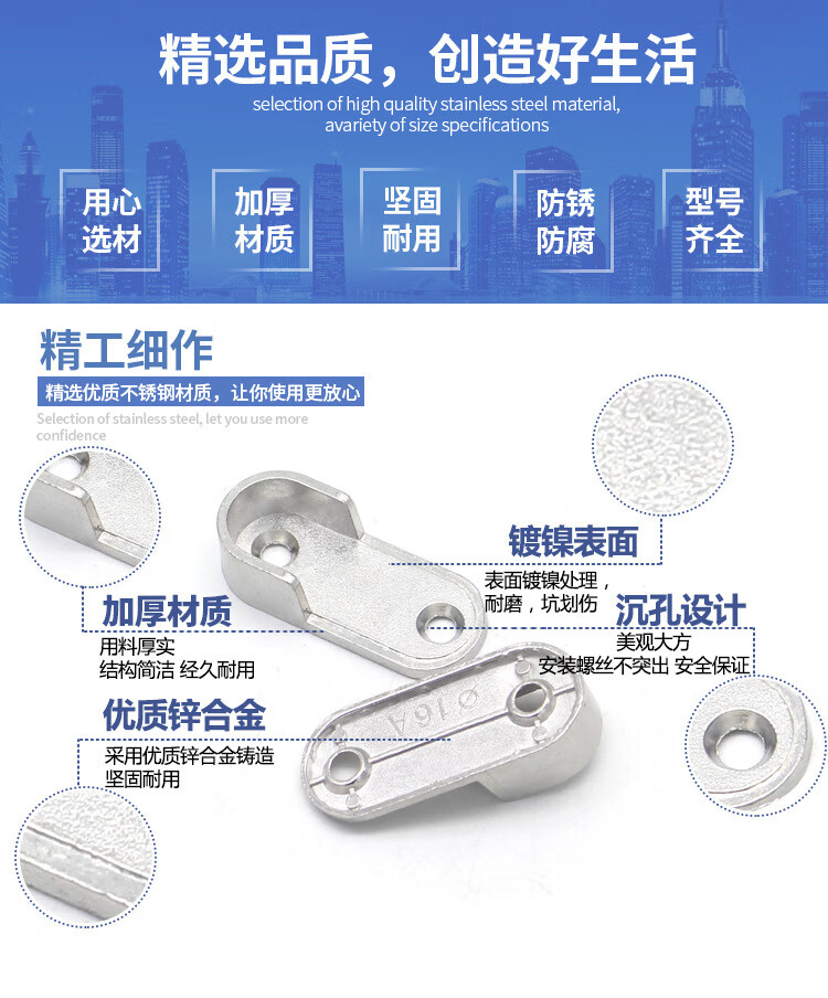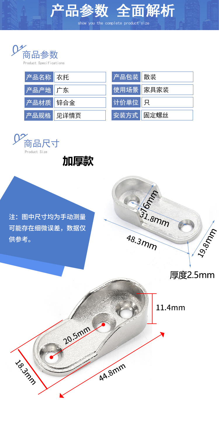 海斯迪克 挂衣杆 gnjz-5166 锌合金 镀镍 2孔11.5g 直径16mm 20个 1包
