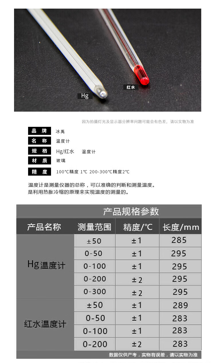 冰禹 高精密温度计 BYC-59 玻璃 0℃~300℃(Hg) 1个