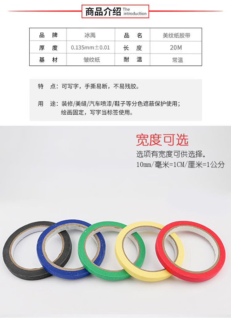 冰禹 彩色美纹纸胶带 BYK-107 20mm*20m 绿色 5卷 1包