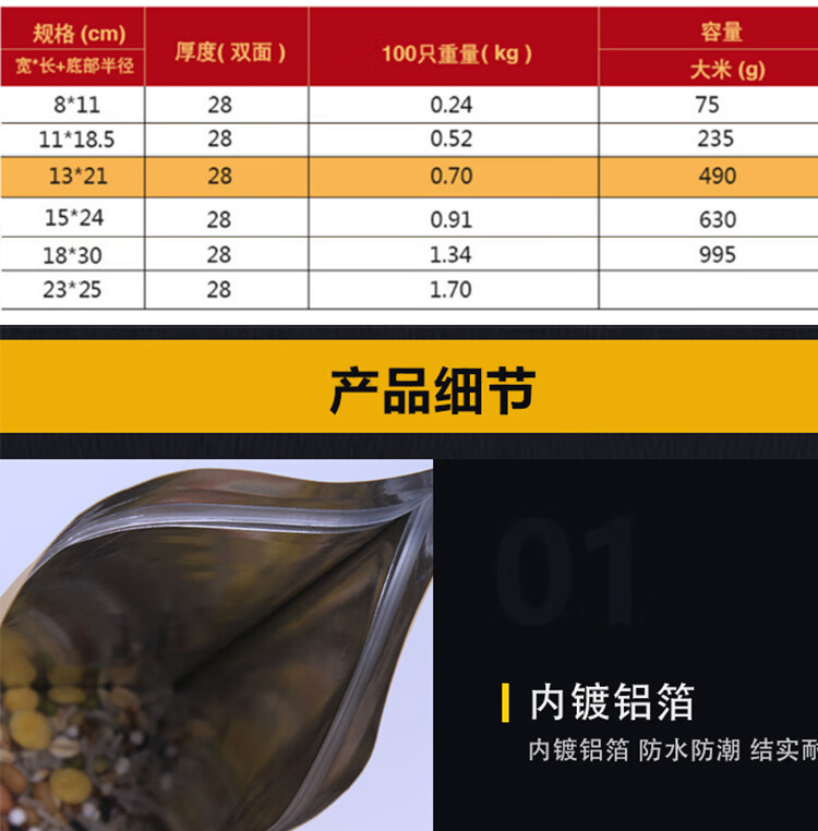 • 商品名称:冰禹 黄牛皮镀铝箔自封袋