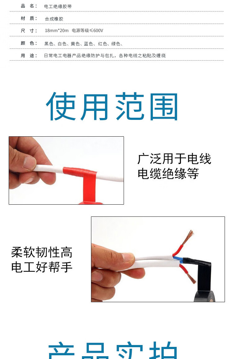 冰禹 电工绝缘胶带 BYK-319 18mm*20m 白色 6卷 1包