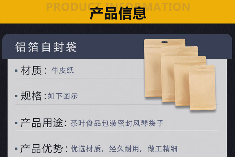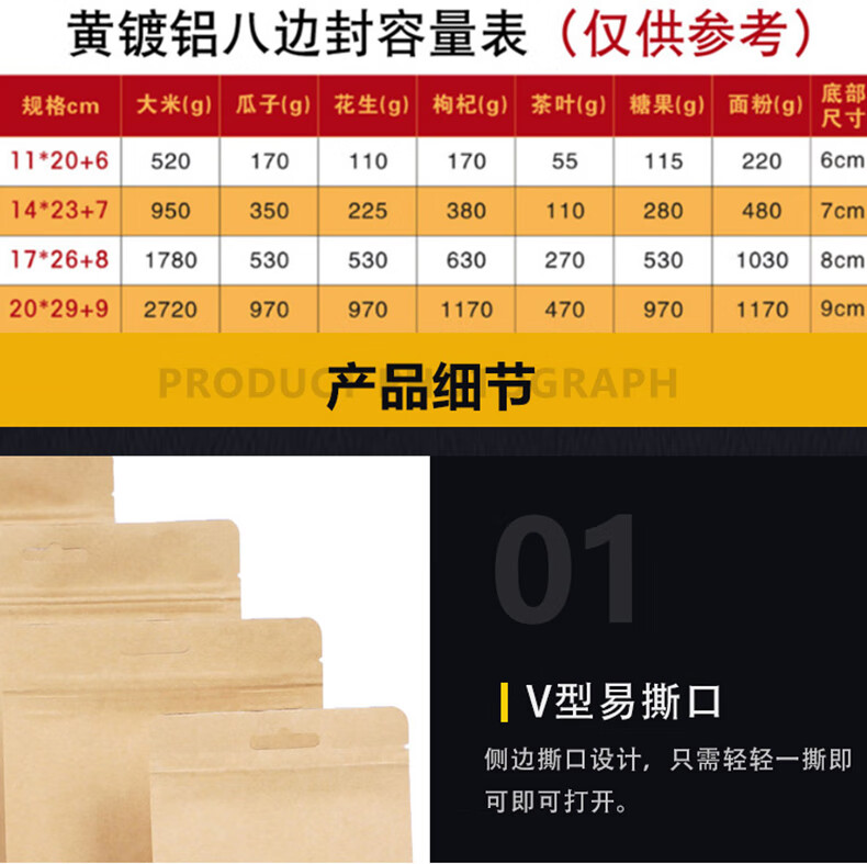 • 商品名称:冰禹 黄牛皮八边封镀铝箔自封袋