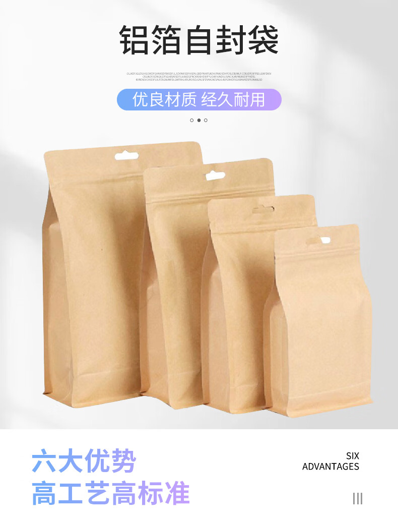 首页>包装及胶带>包装工具及耗材>包装袋系列>铝箔袋>冰禹 黄牛皮八边封镀铝箔自封袋
