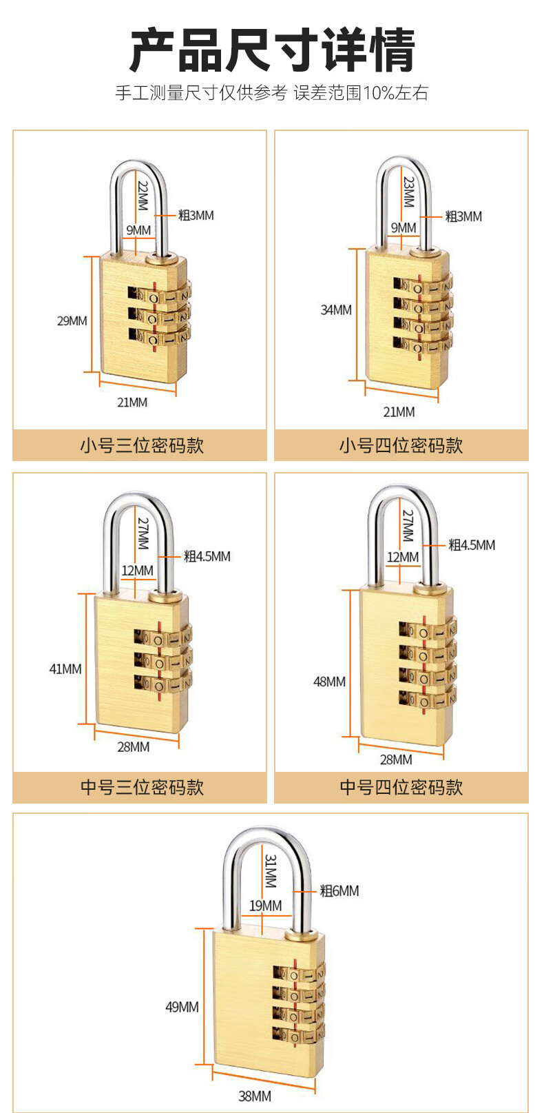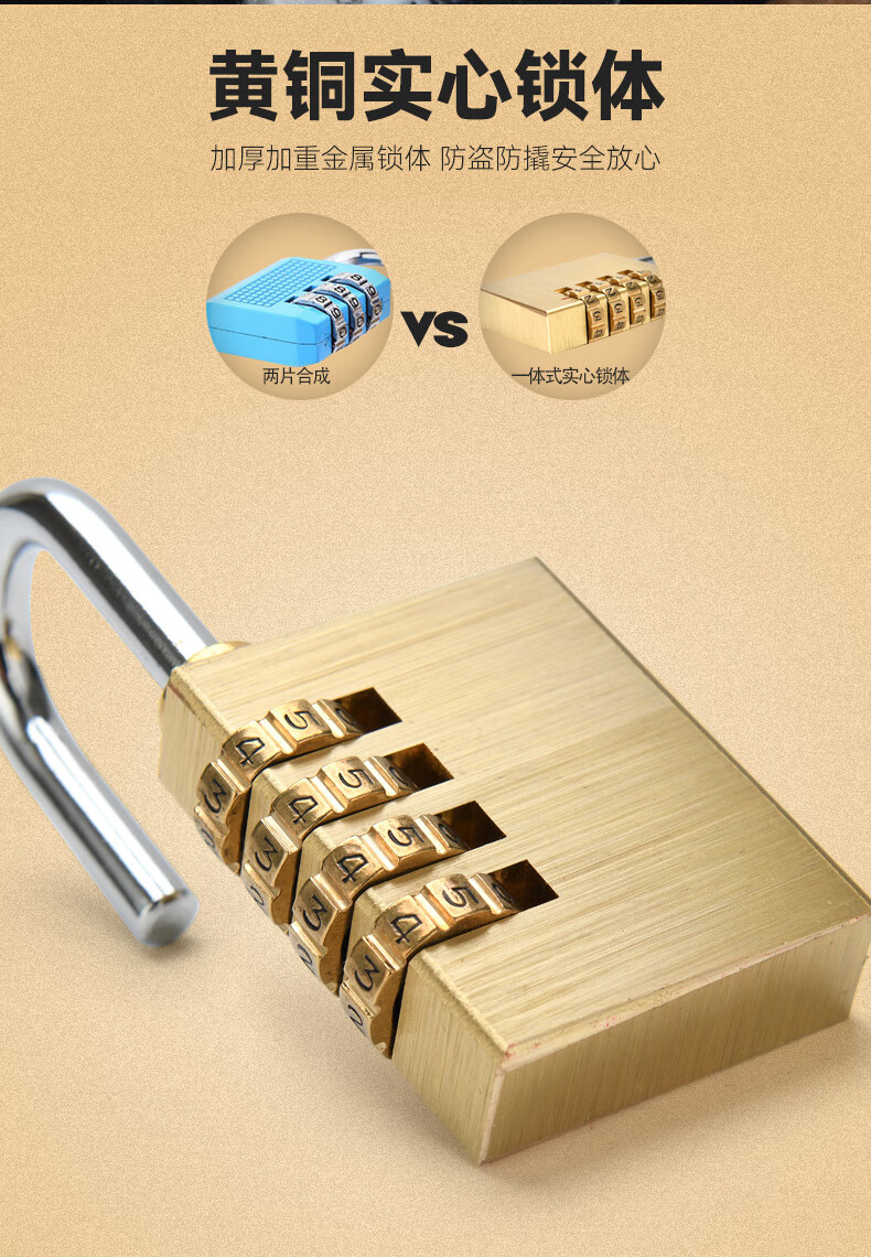 冰禹 黄铜密码挂锁 BYB-164 3轮密码锁(中号) 1个
