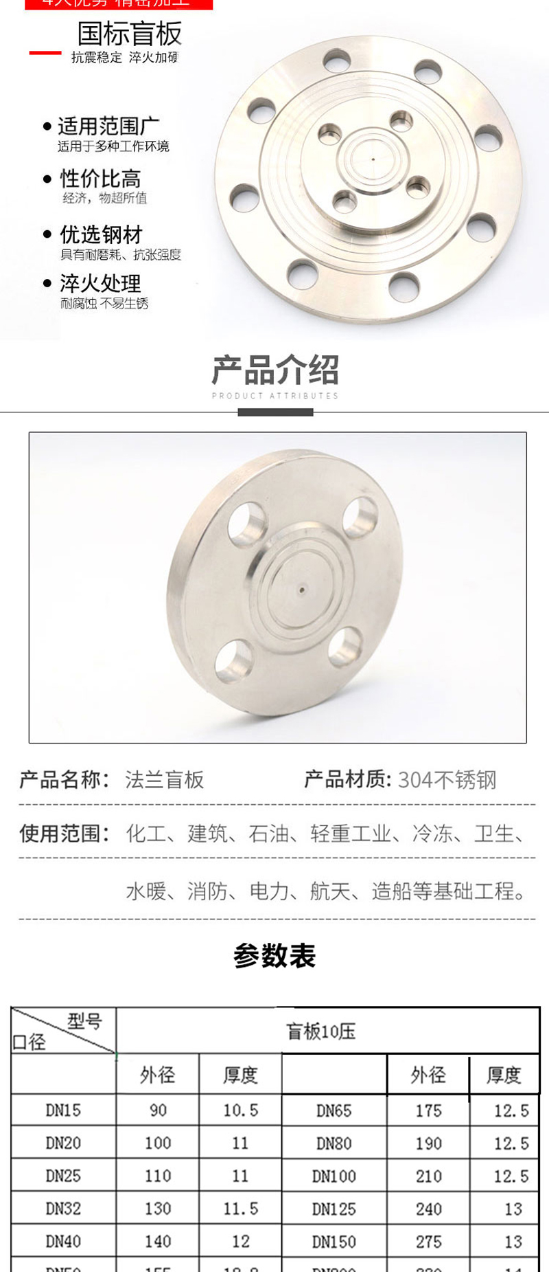 • 商品名称:冰禹 304不锈钢法兰盲板