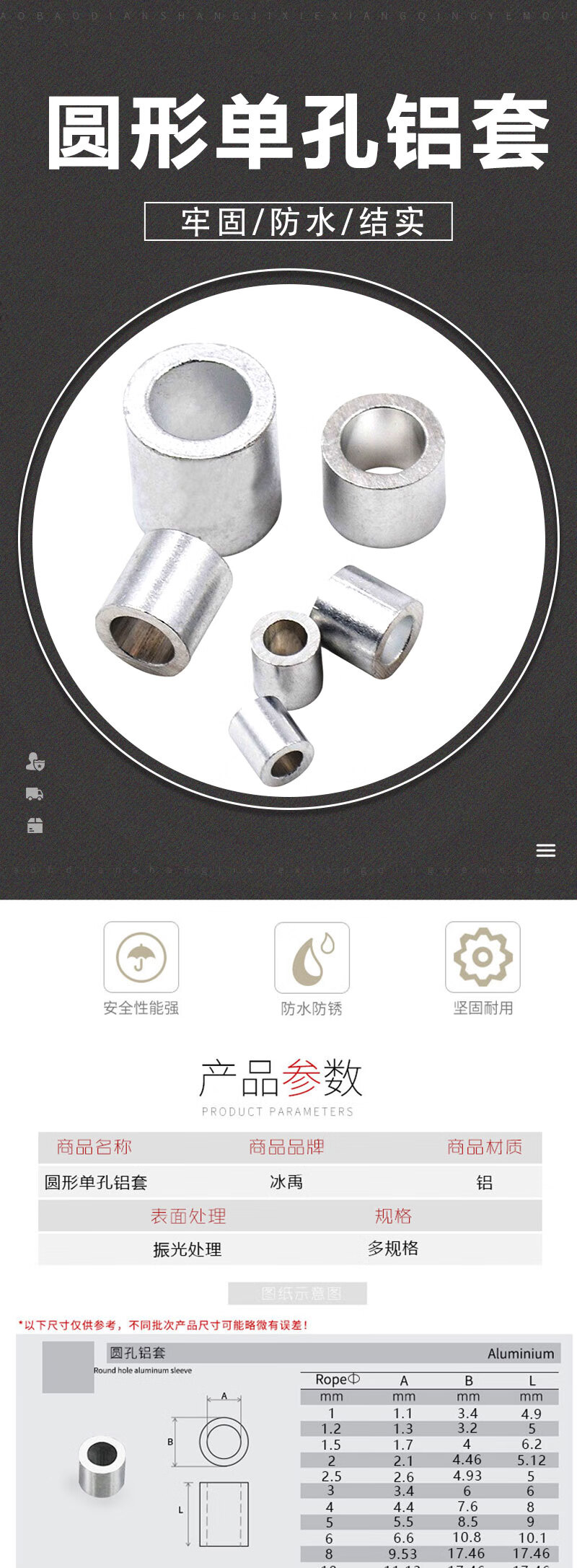 冰禹 钢丝绳铝套 BYB-20 1.2mm 100个 1包