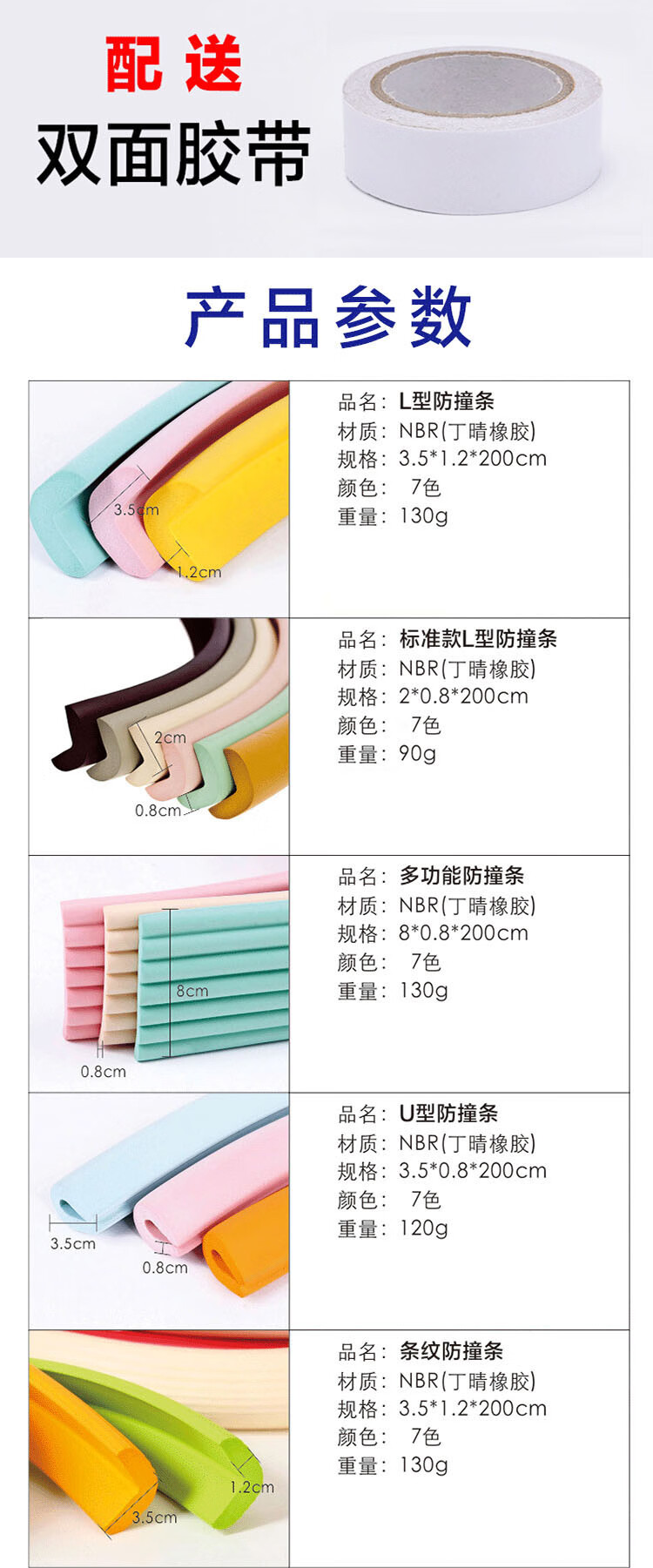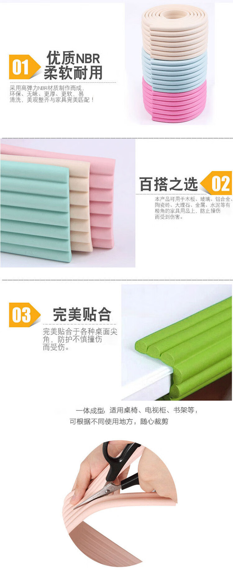 海斯迪克 护桌角防撞护条 HKCX-141 颜色随机(含双面胶)条纹型2米 3卷 1件