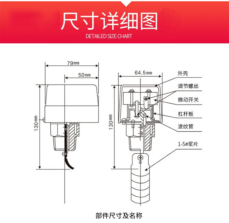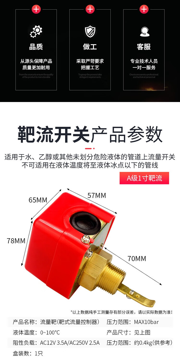 冰禹 靶式流量开关 BYS-325 4分HFS-15 红色 1个
