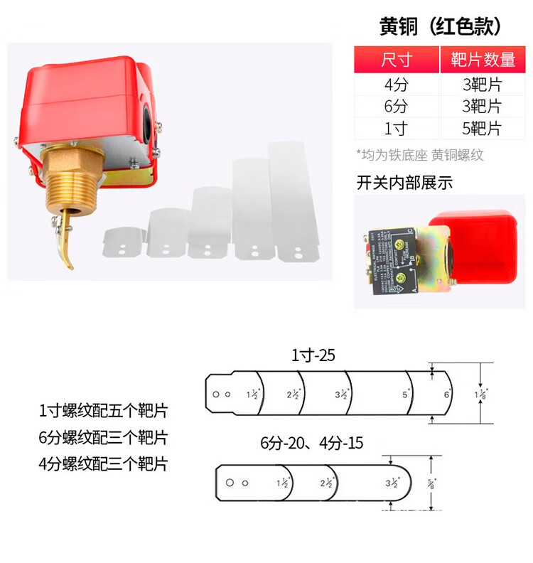 冰禹 靶式流量开关 BYS-325 1寸HFS-25 红色 1个