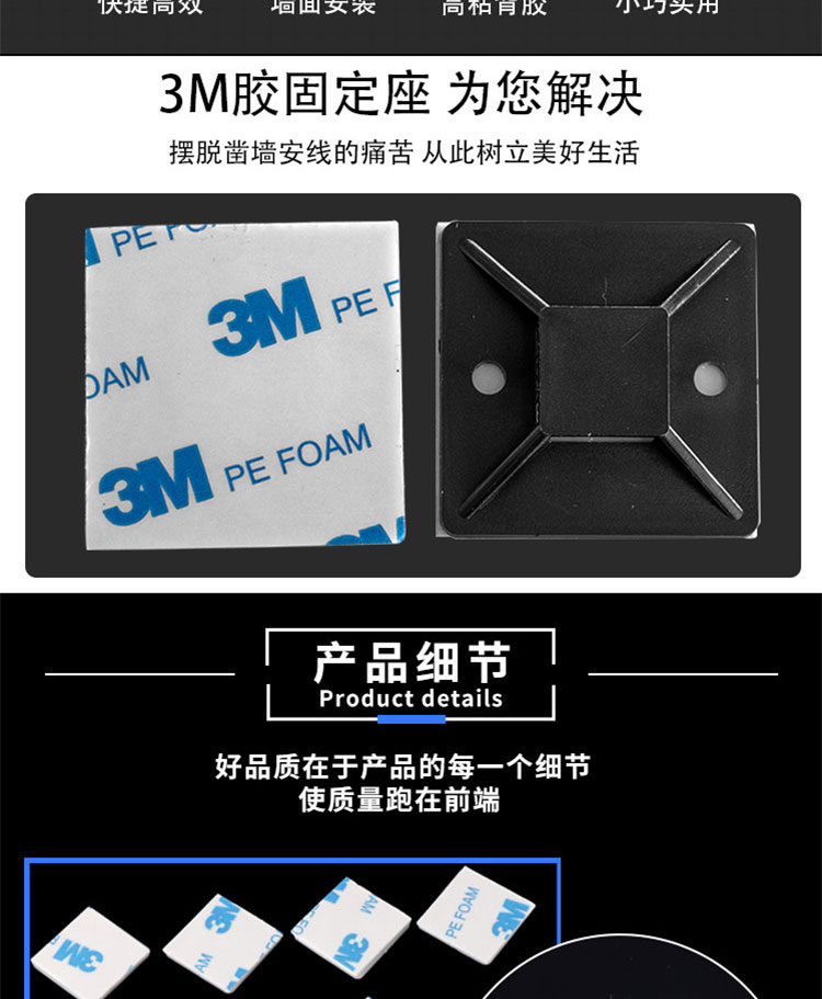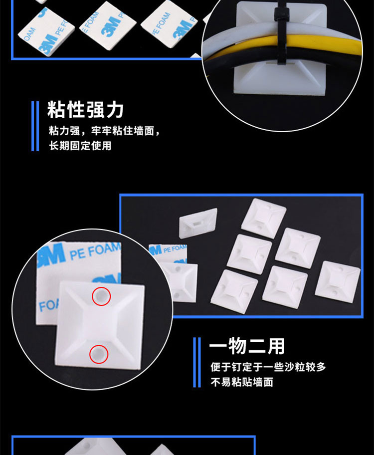 冰禹 扎带固定座 BYyc-25 40*40mm 黑色 PE 100个 1包