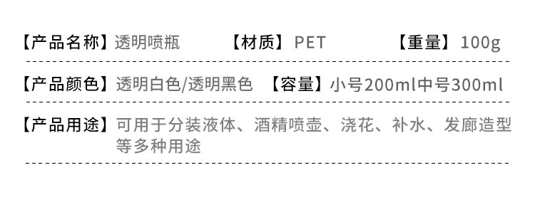 海斯迪克 喷雾瓶分装瓶 HKY-183 透明白 200ml PET 1个