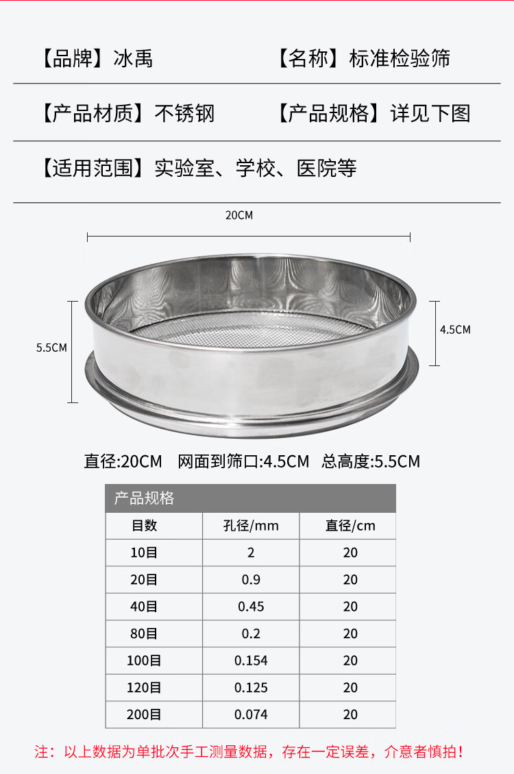 • 商品名称:冰禹 304不锈钢网标准检验筛