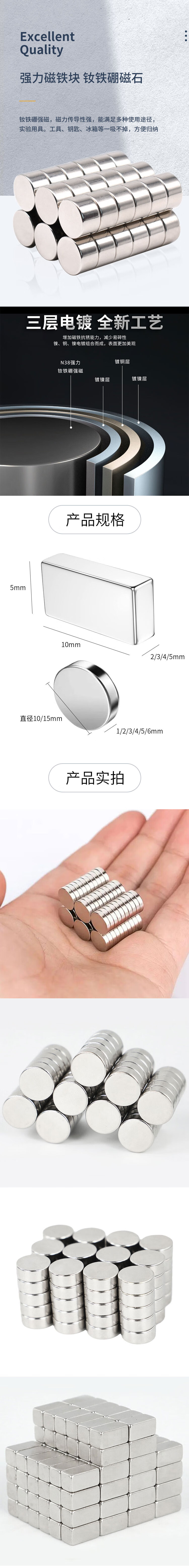 冰禹 强力磁铁块 BYS-338 直径10mm厚4mm 圆形 10个 1包