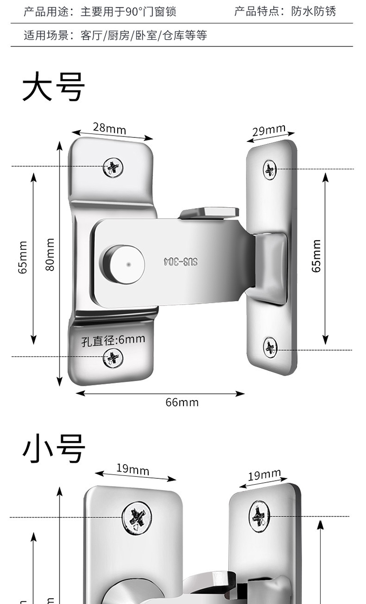冰禹 门扣 BYB-10 304不锈钢 大号银色 1个