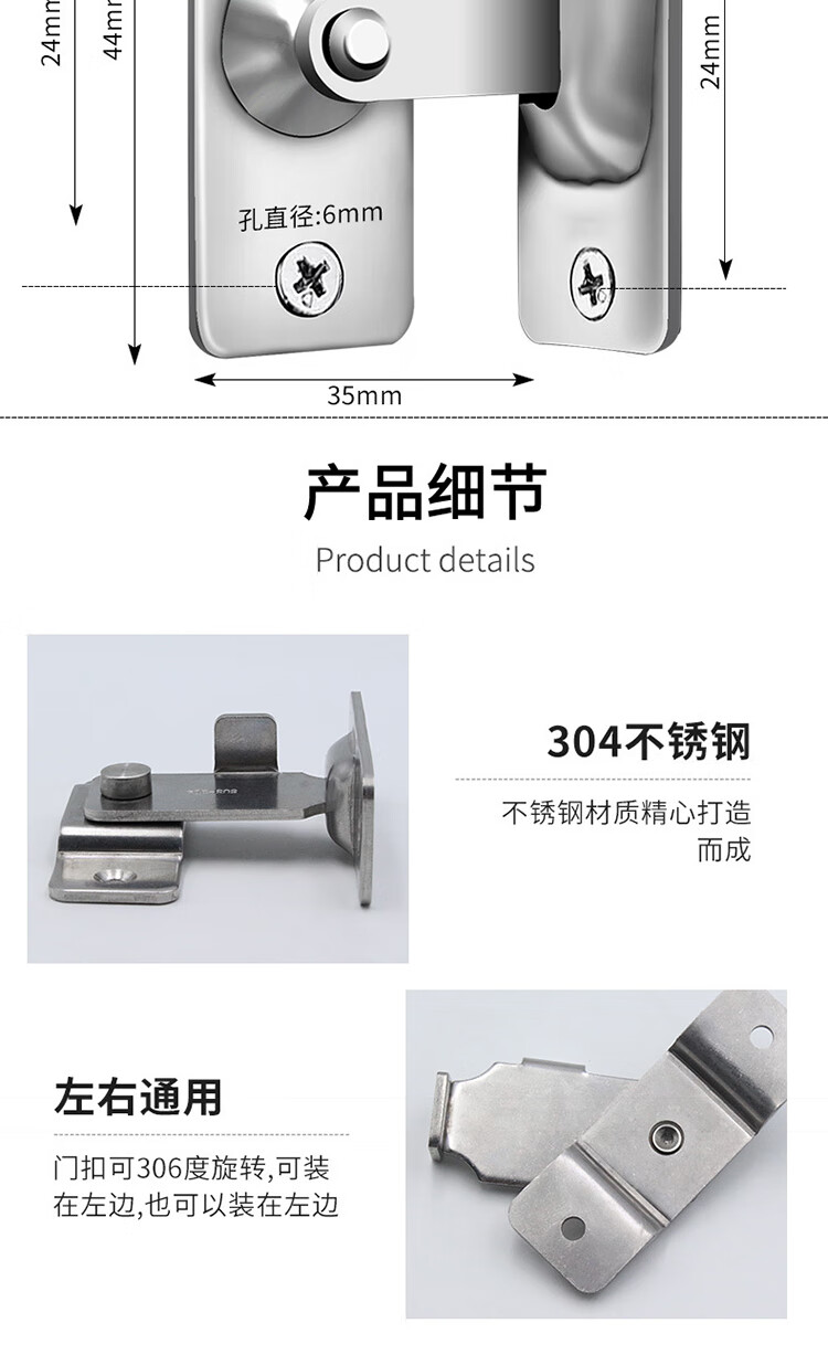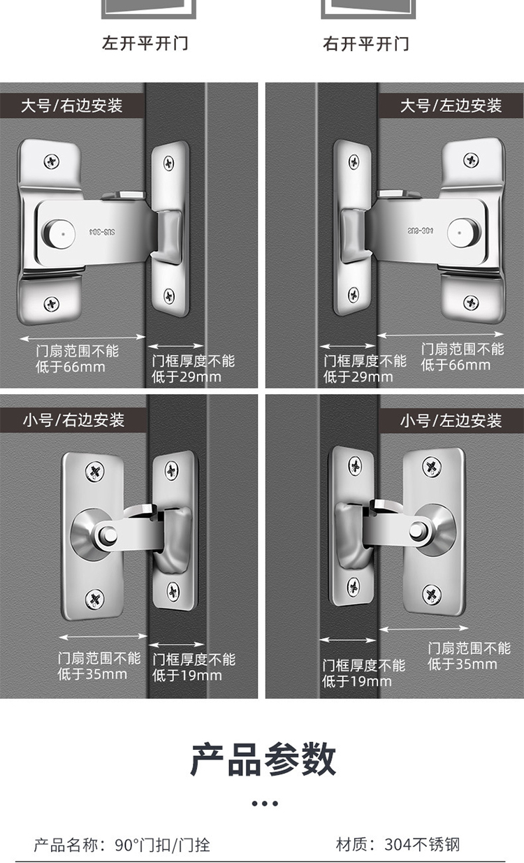 冰禹 门扣 BYB-10 304不锈钢 黑色大号 1个