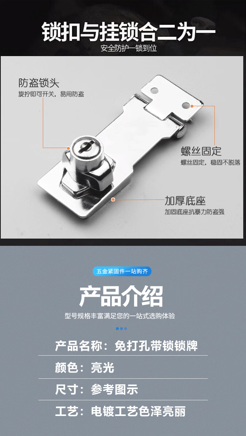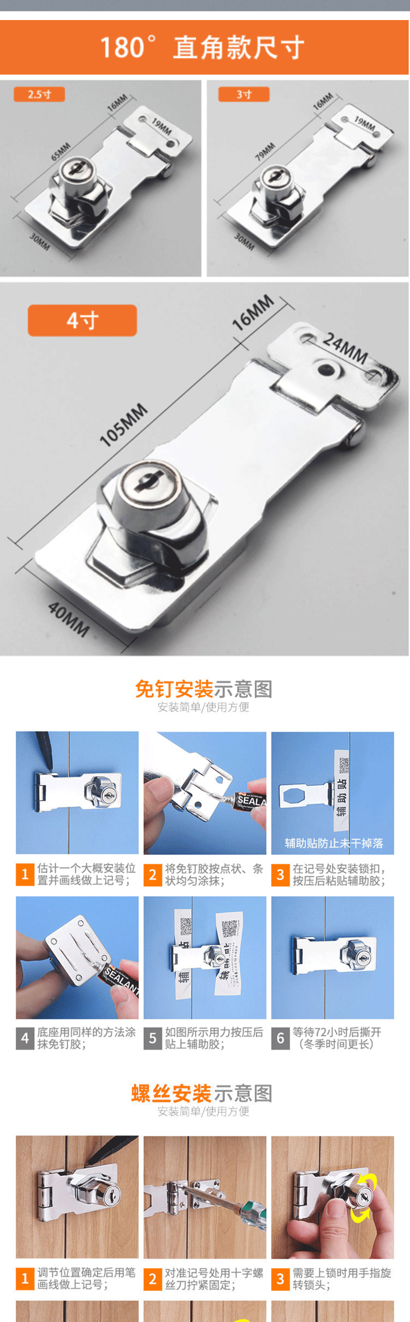 冰禹 免打孔锁 BYZJ-10 3寸亮光 1个