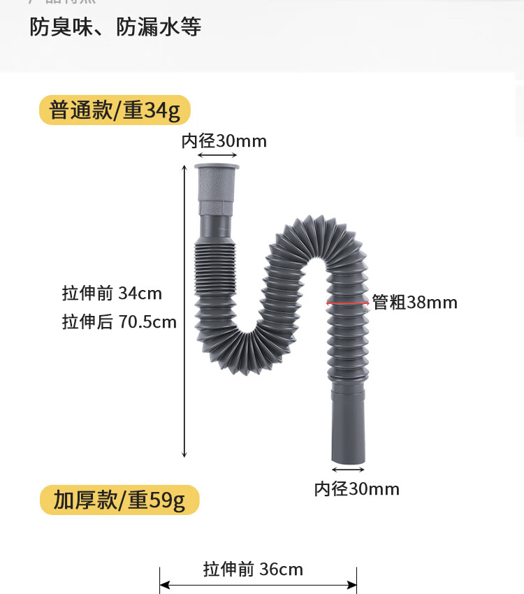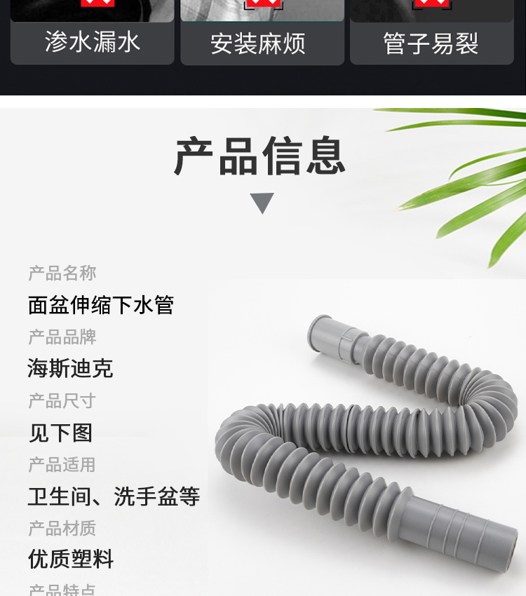 海斯迪克 下水管 gnjz-5329 塑料 加厚款 2个 1件