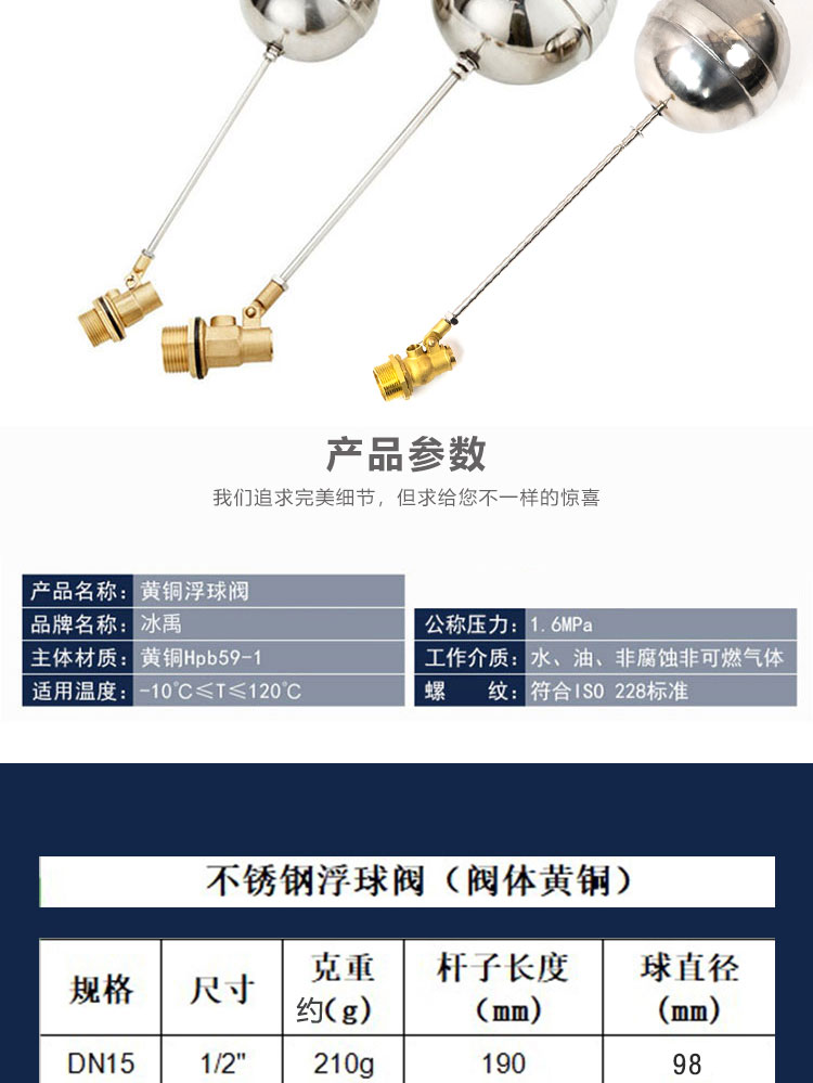 冰禹 黄铜镀镍浮球阀 BYQ-870 DN32(1.25寸) 1个