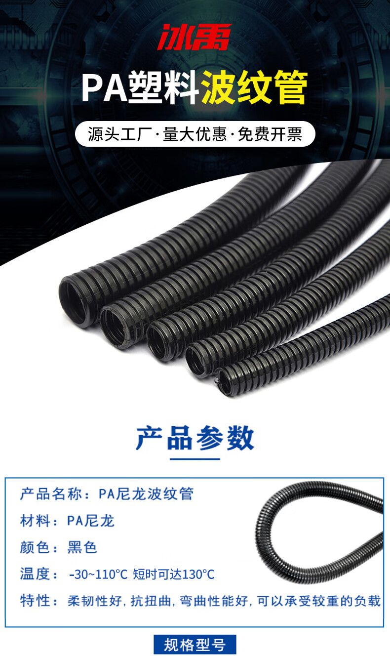 冰禹 PA波纹管 BYyn-750 AD13(10*13mm) 100m 1卷