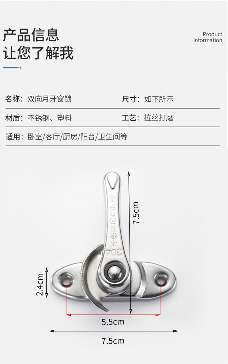 冰禹 门窗锁扣 BYP-166 不锈钢+塑料 银色万向 1个