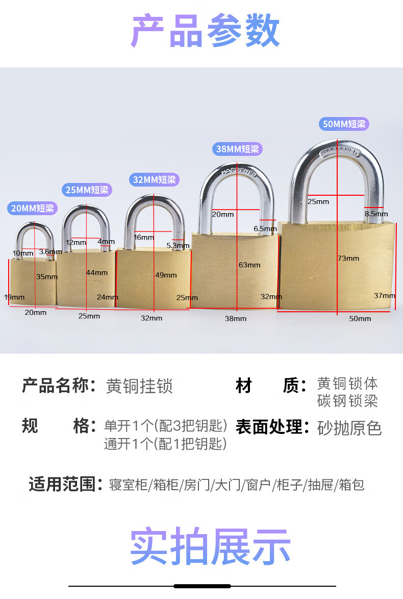 冰禹 黄铜挂锁 BYxx-25 50mm短梁单开 1个
