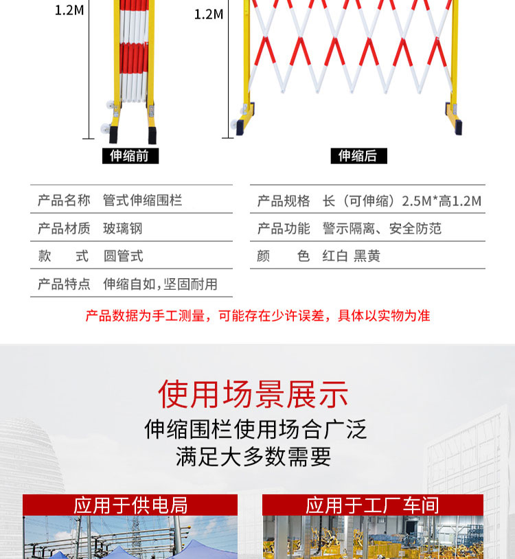 冰禹 可移动式隔离栏 BYT-13 红白管式1.2m高可伸2.5m 1个