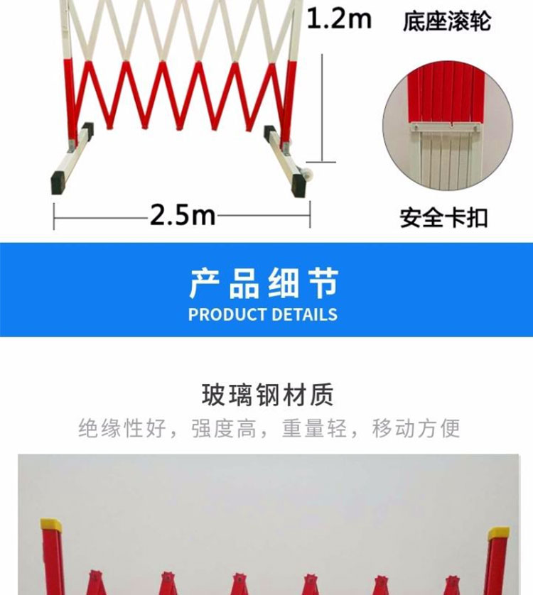 冰禹 可移动式隔离栏 BYT-13 红白片式1.2m高可伸2.5m 1个
