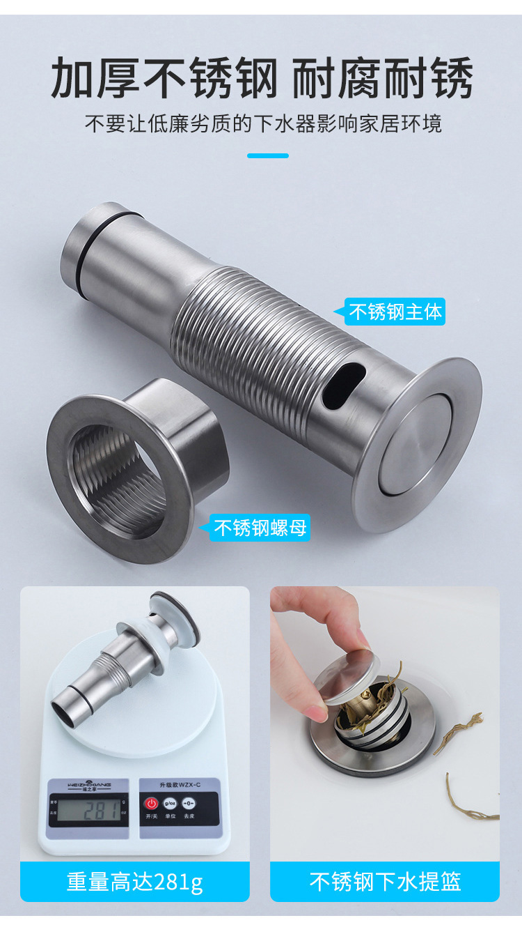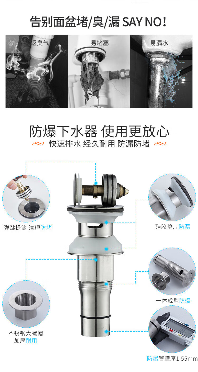 海斯迪克 面盆下水器 gnxy-15 弹跳无孔 1个