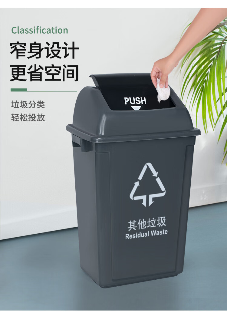 冰禹 长方形垃圾桶 BY-2029 塑料 蓝色 40L有盖 可回收物 1个