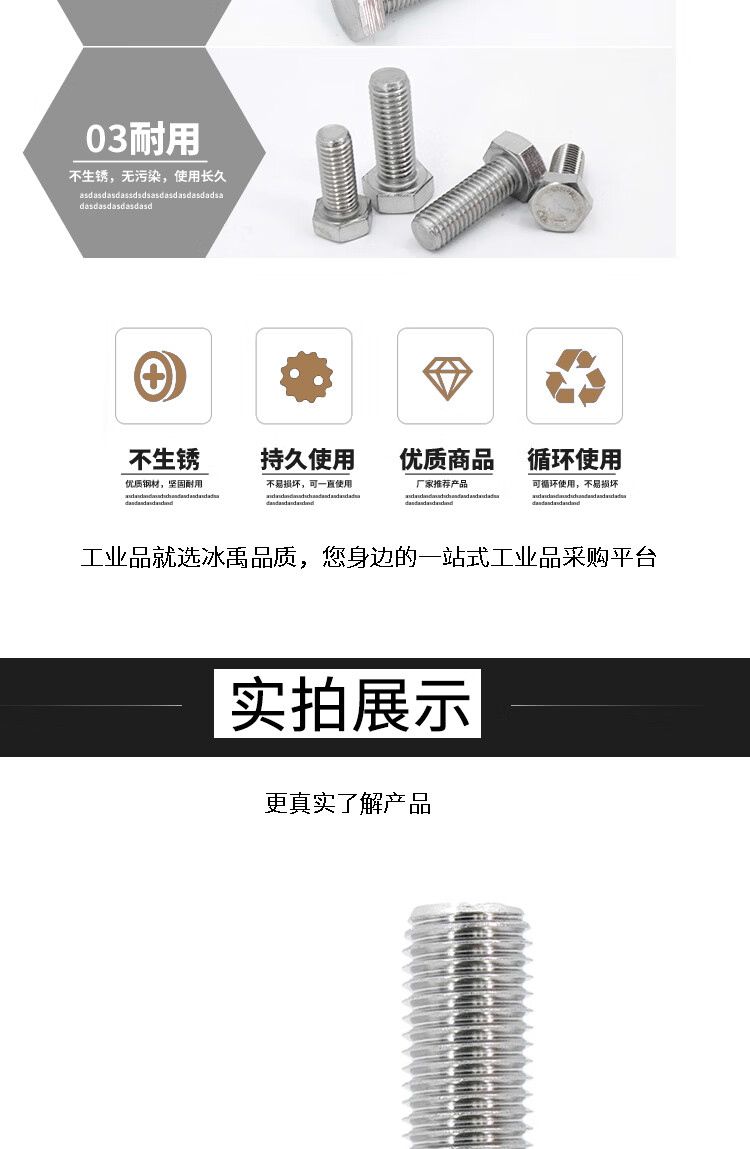 冰禹 外六角螺丝 BY-363 M6*20 DIN933 304不锈钢 1个