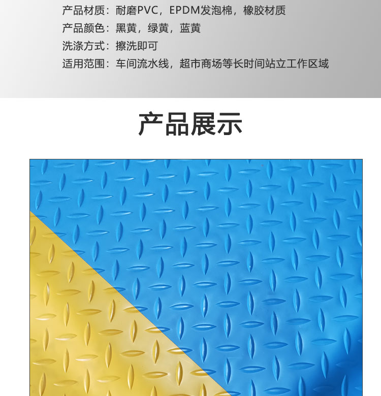 冰禹 车间警示垫子 BYlj-171 蓝黄 0.9m*0.6m*20mm 1块
