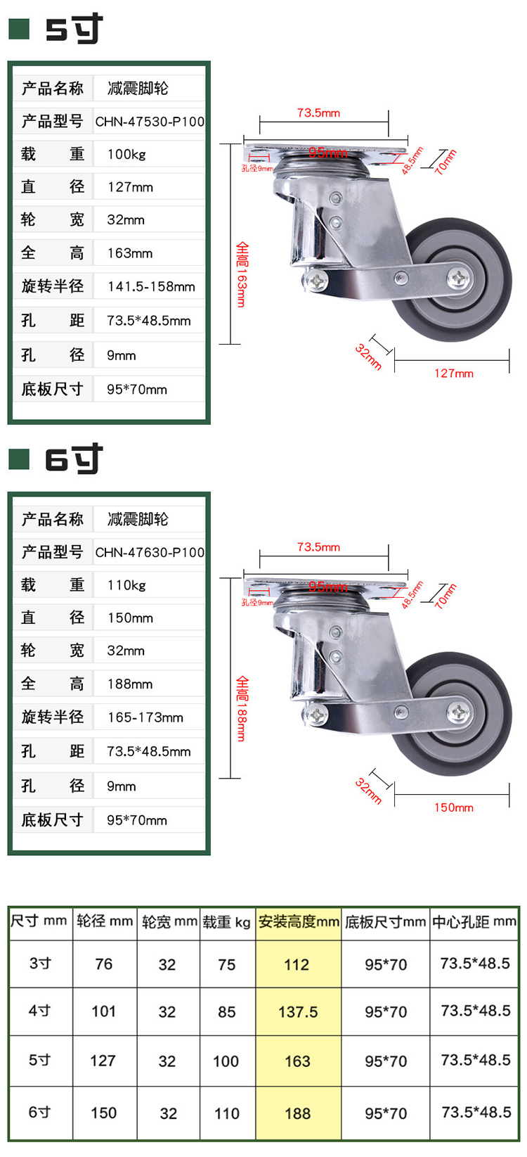 4寸万向轮
