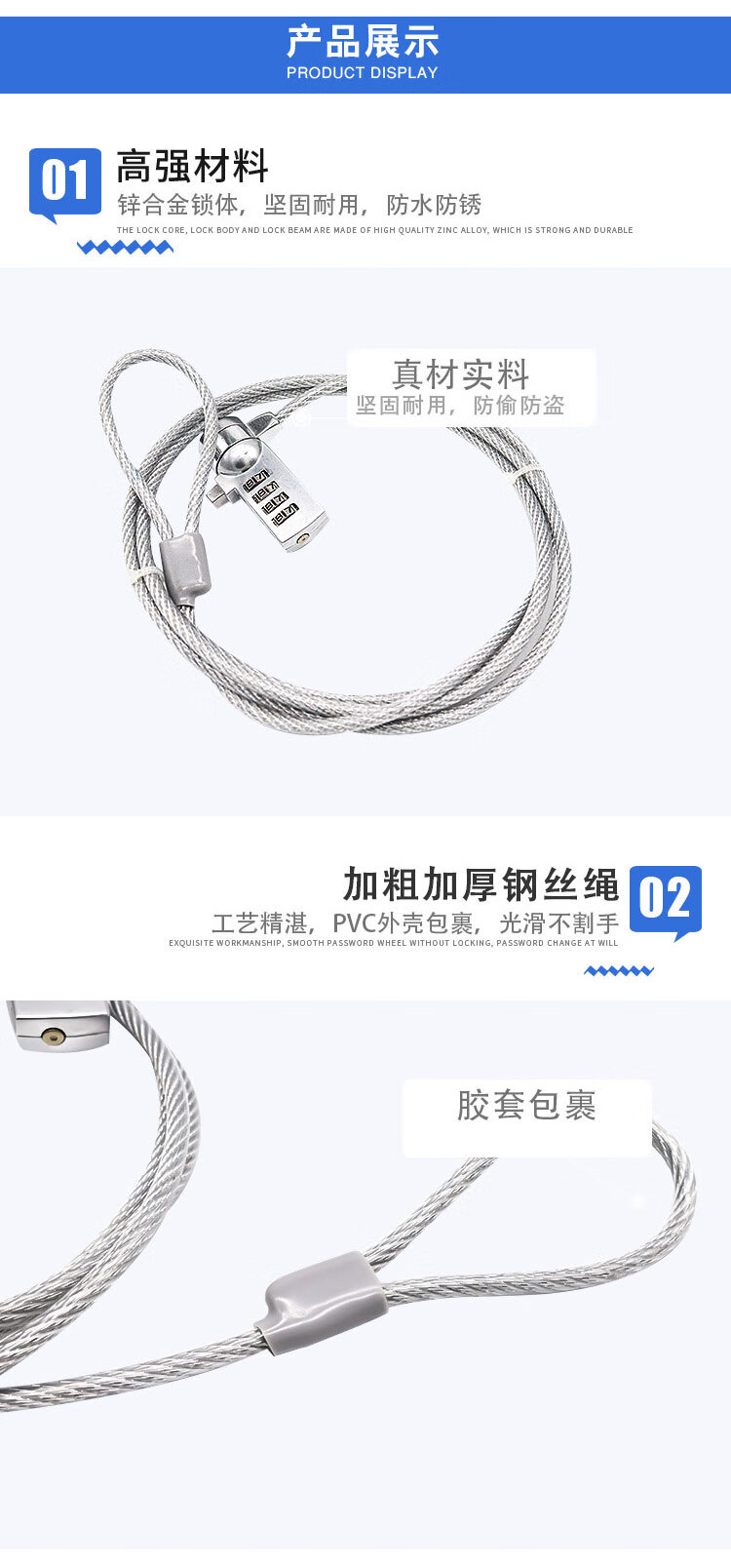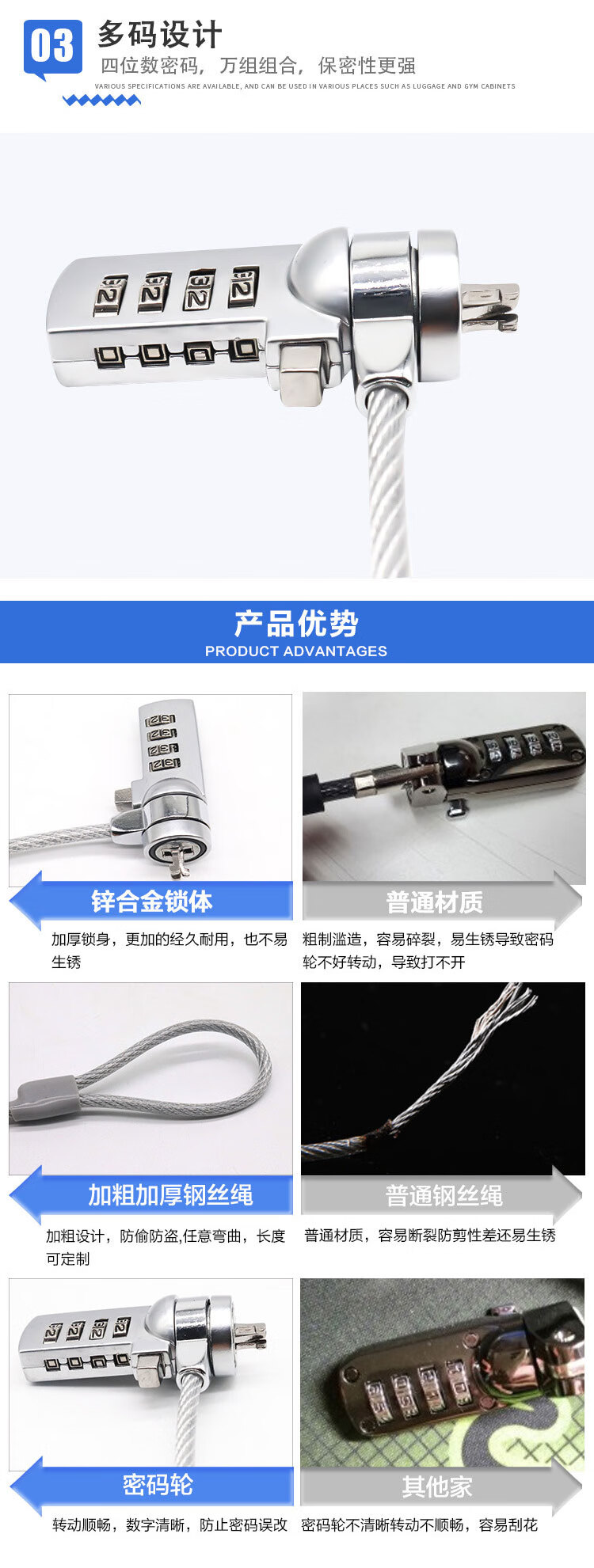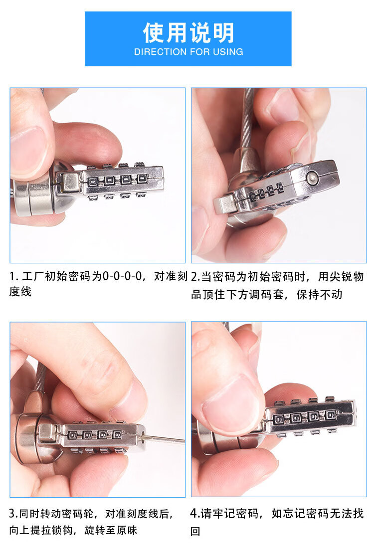 冰禹 四位数字密码锁 BYC-273 直径3.5mm 长度1.5m 1个